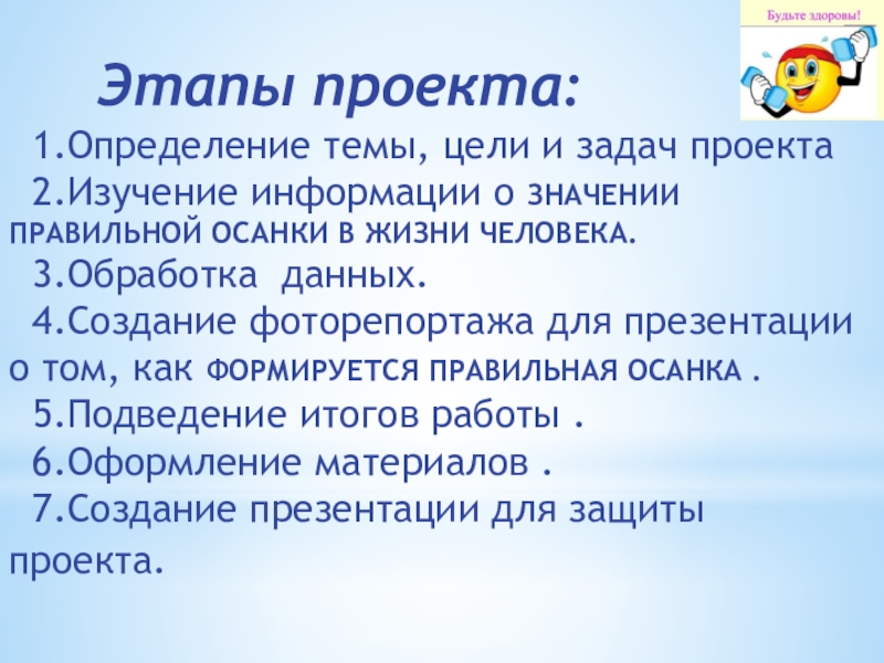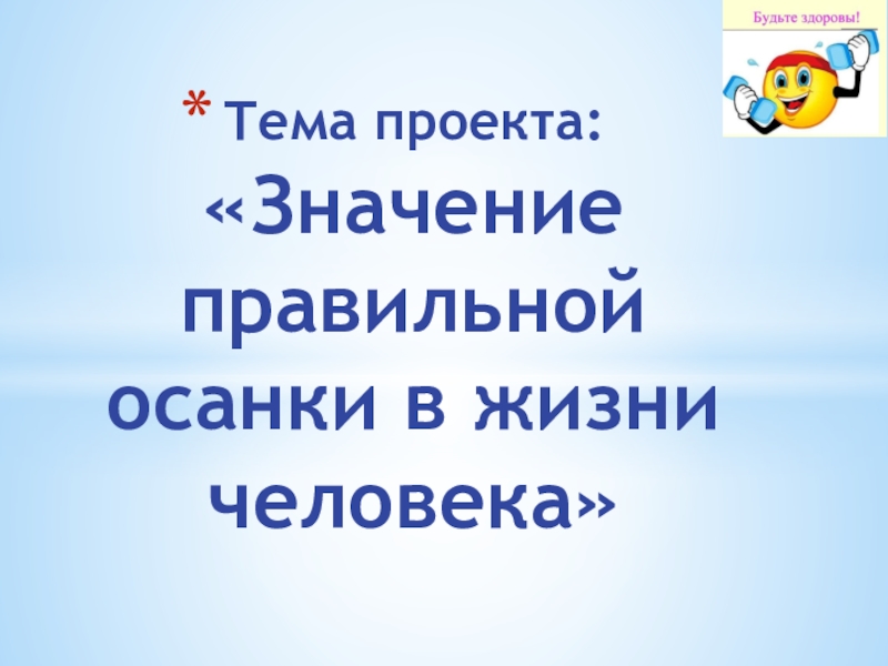 Слайд 3Тема проекта: «Значение правильной осанки в жизни человека»