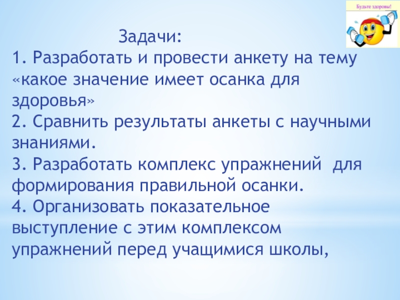 Разработать и провести анкету на тему «какое значение имеет осанка для здоровья»