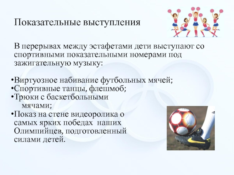 В перерывах между эстафетами дети выступают со спортивными показательными номерами