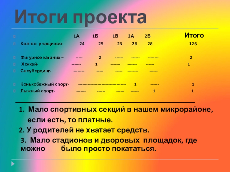 Наша проблема: Узнать, какими видами спорта занимаются ребята 1-2 классов