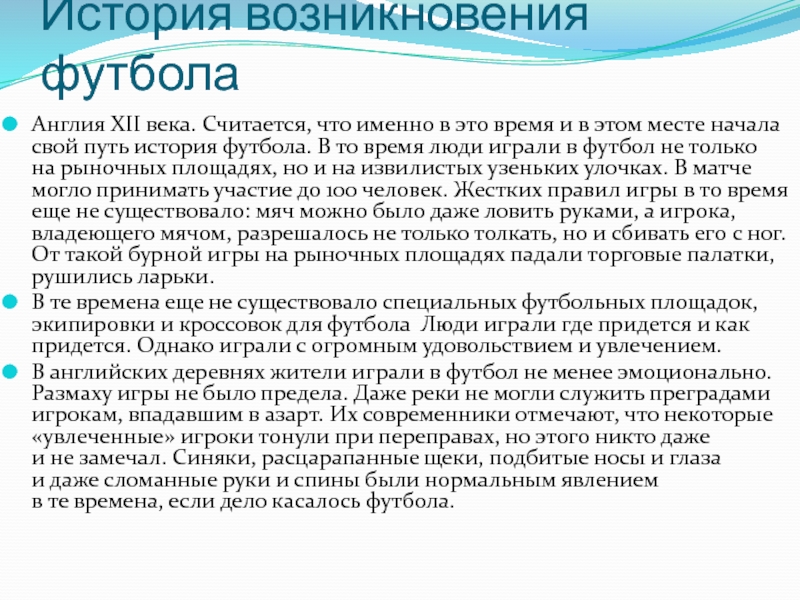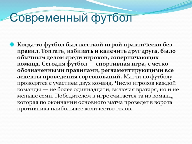 Современный футбол Когда-то футбол был жесткой игрой практически без правил. Топтать, избивать и калечить друг друга, было