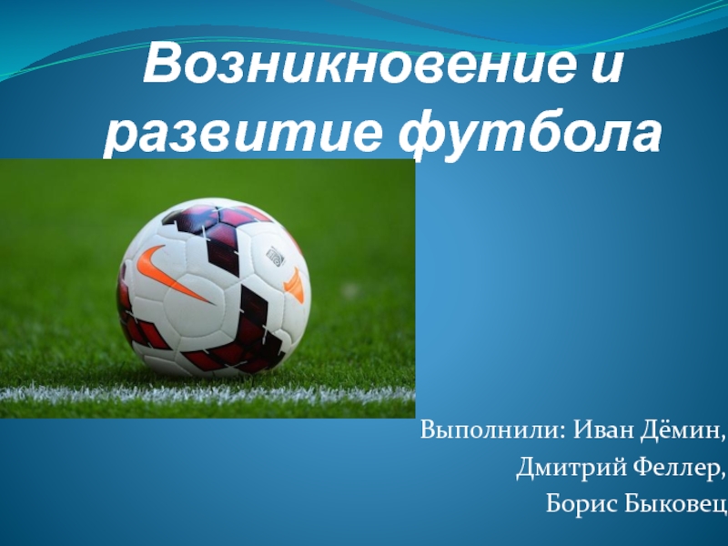 Возникновение и развитие футболаВыполнили: Иван Дёмин,Дмитрий Феллер,Борис Быковец