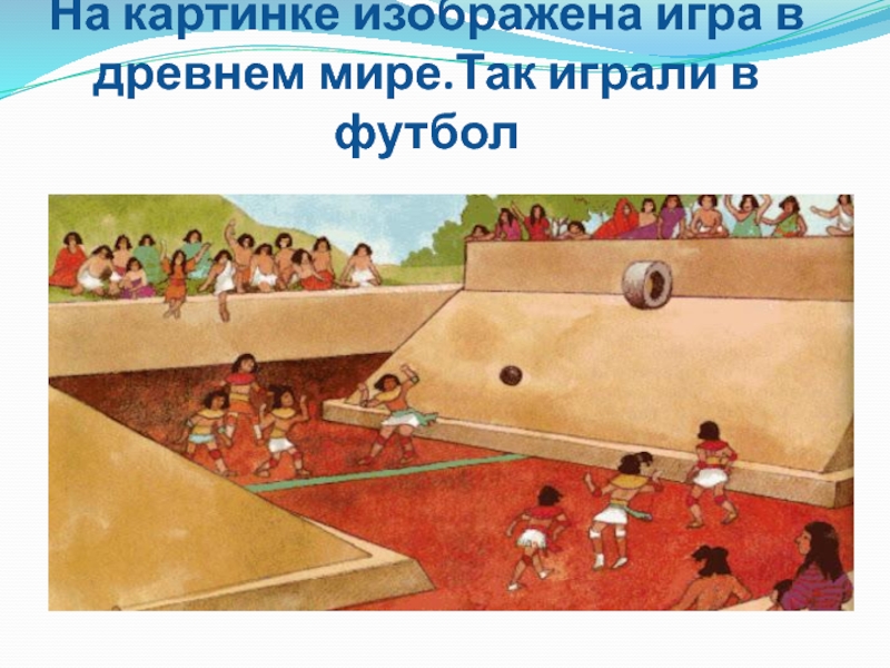 Слайд 4На картинке изображена игра в древнем мире.Так играли в футбол