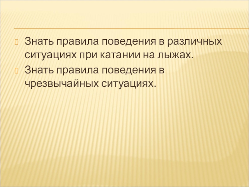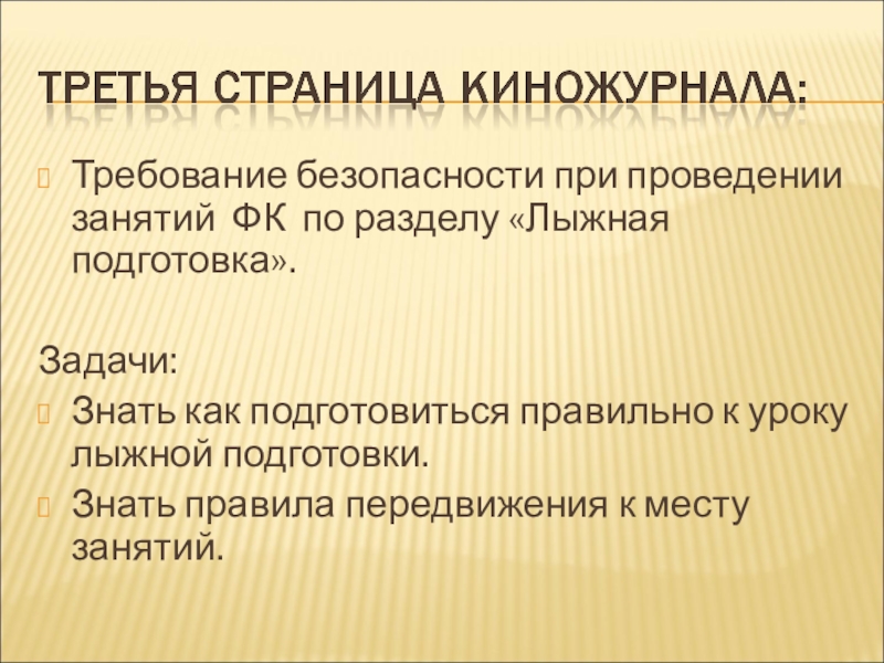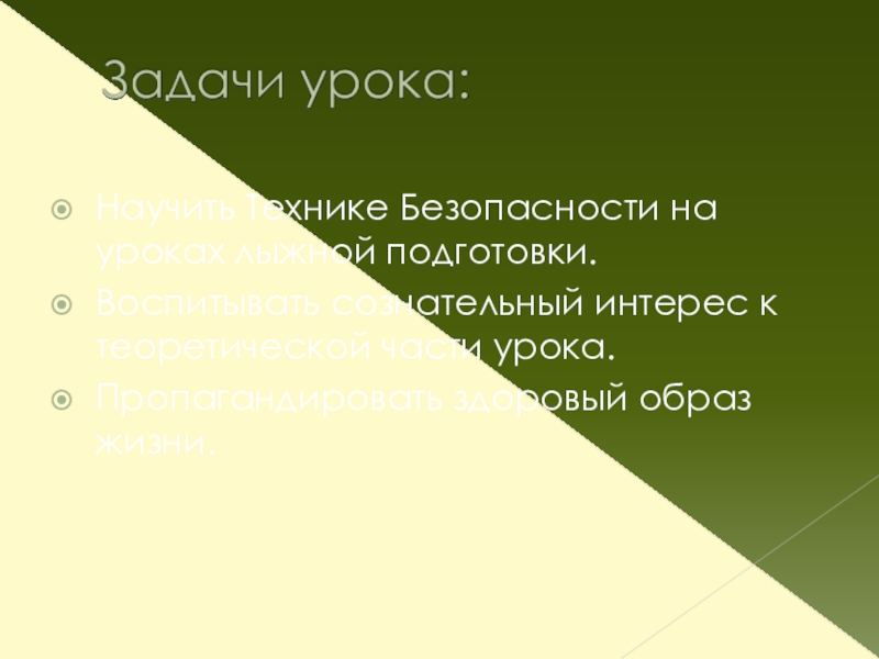 Слайд 3Научить Технике Безопасности на уроках лыжной подготовки.