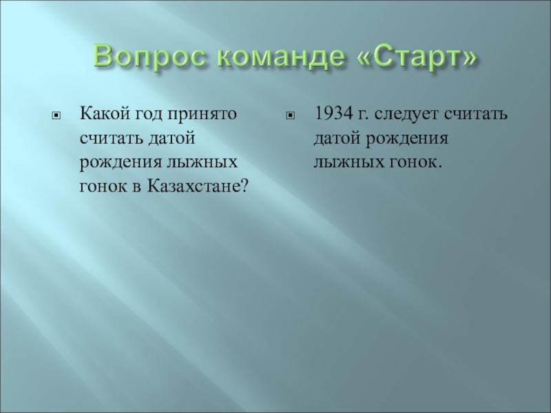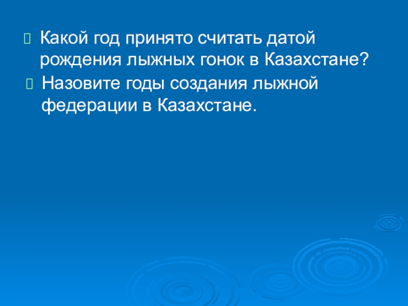 Слайд 7Какой год принято считать датой рождения лыжных гонок в Казахстане?