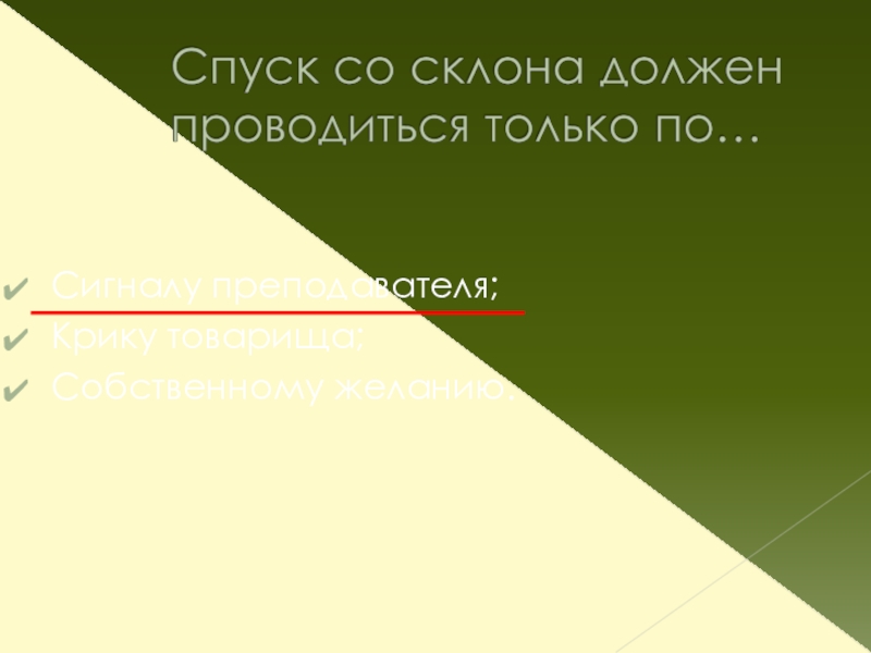 Спуск с гор должен проводиться только по сигналу преподавателя, строго поочередно для каждого