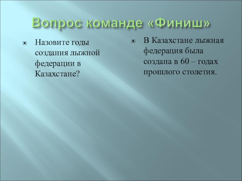 Слайд 26В Казахстане лыжная федерация была создана в 60 – годах прошлого