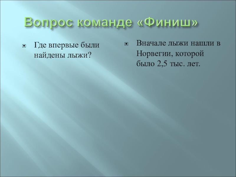 Слайд 22Вначале лыжи нашли в Норвегии, которой было 2,5 тыс. лет.