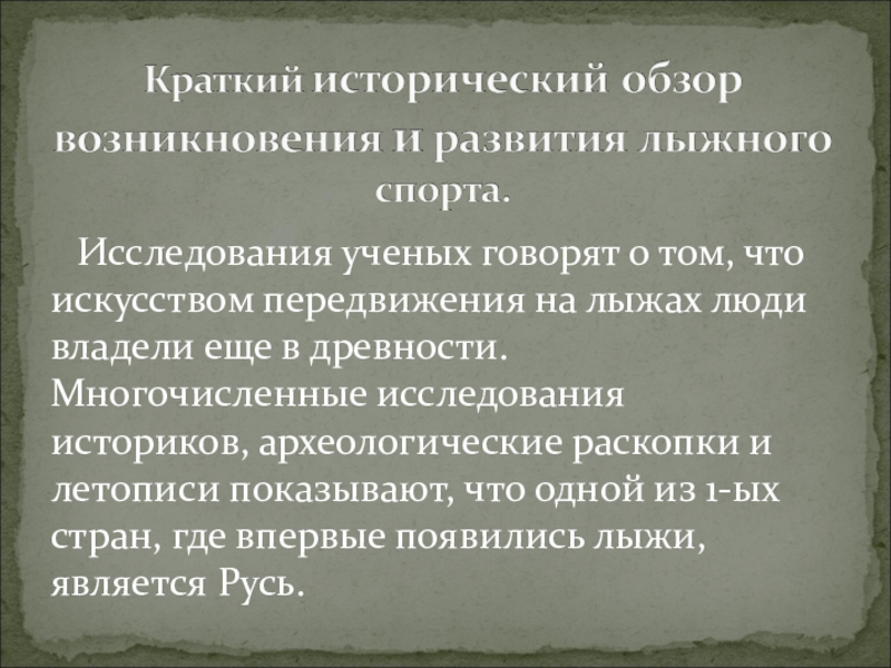 Слайд 4«Краткий исторический обзор возникновения и развития лыжного спорта»