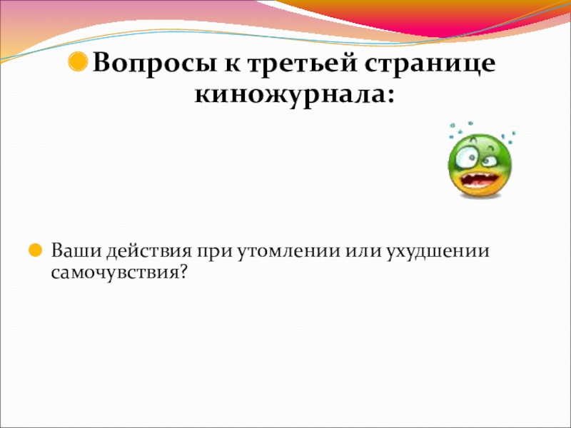 Слайд 51Ваши действия при утомлении или ухудшении самочувствия?
