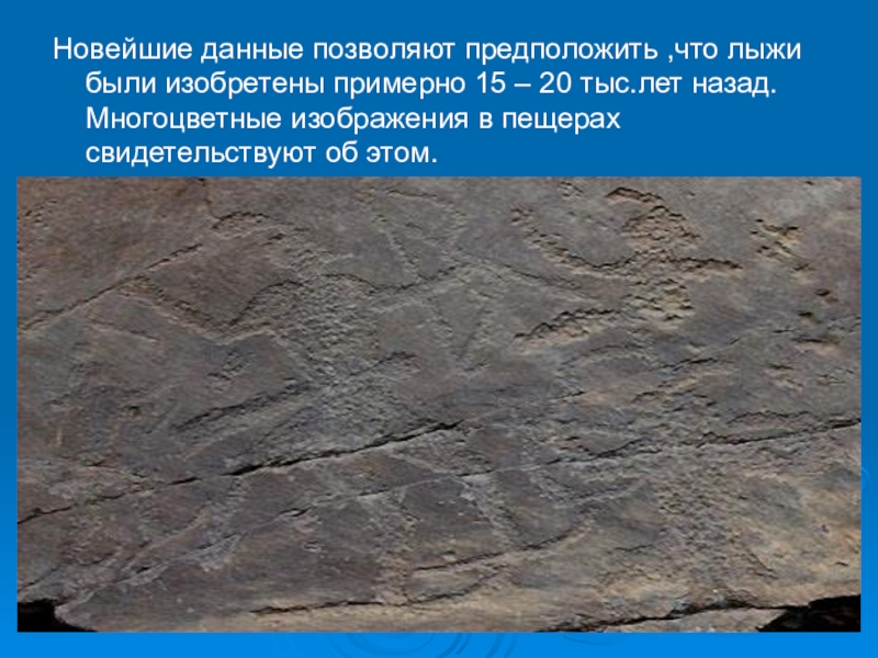 Слайд 11Новейшие данные позволяют предположить ,что лыжи были изобретены примерно 15 –
