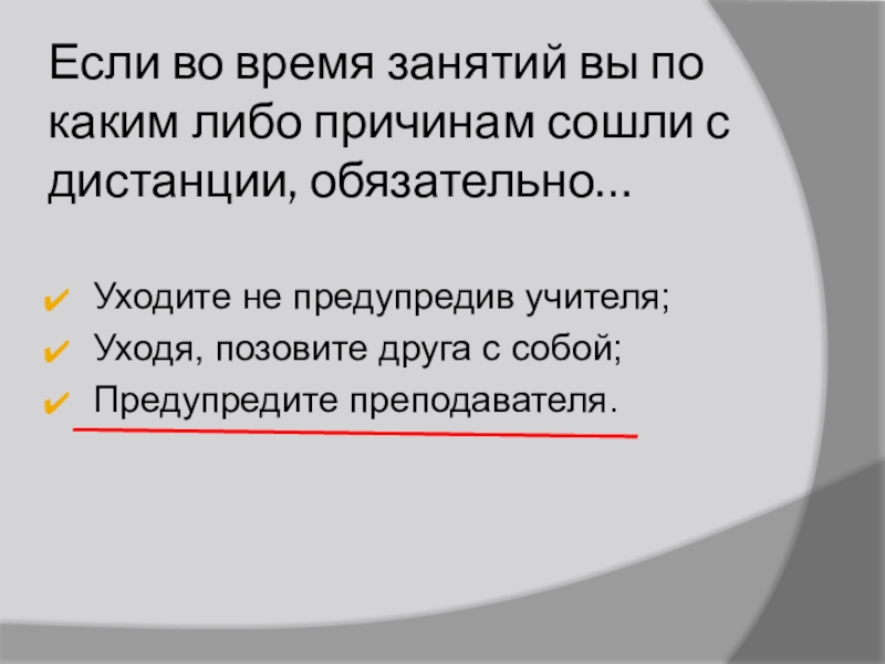 Слайд 46Если во время занятий вы по каким- либо причинам сошли с