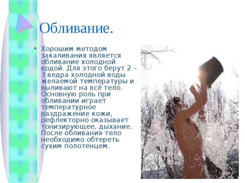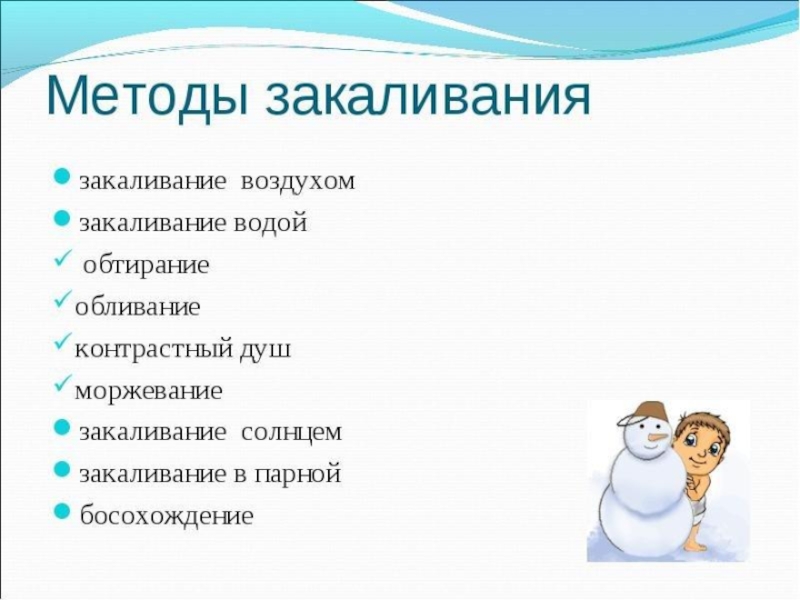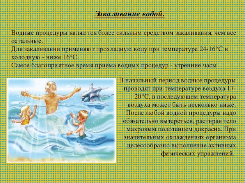 30 до 20°С, прохладные - от 20 до 14°С, холодные - при температуре ниже 14°С. Самый простой и очень эффективный способ сохранения и укрепления здоровья.
