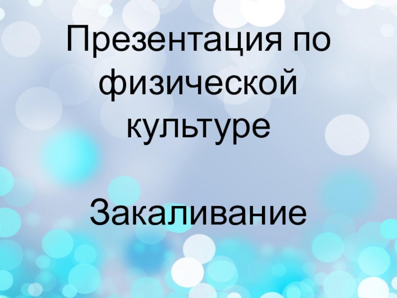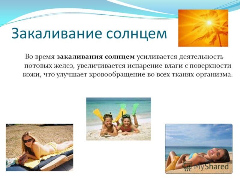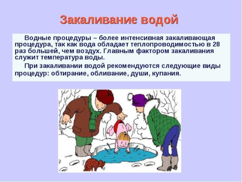 Закаливание - повышение устойчивости организма к неблагоприятному воздействию физических факторов окружающей среды.