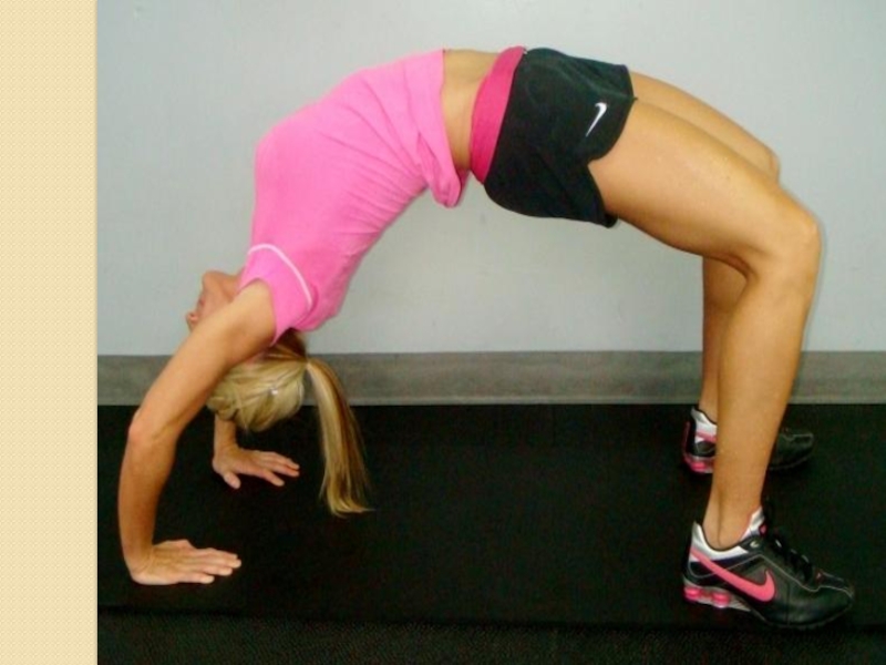 1. спина при выполнении мостика должна быть выгнута по дуге, мостик с прямой спиной, сделанный за счет конечностей, является неправильным