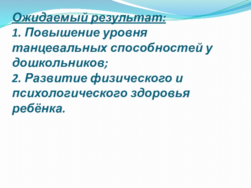 1. Повышение уровня танцевальных способностей у дошкольников;