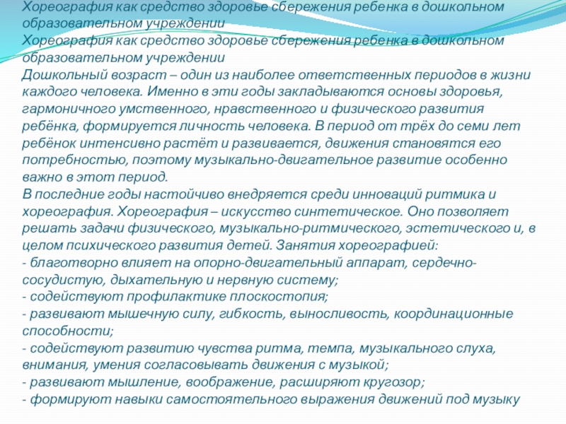 Слайд 8Хореография как средство здоровье сбережения ребенка в дошкольном образовательном учреждении