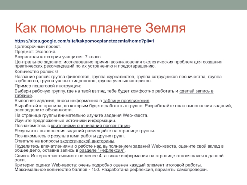 Критерии оценки Web-квеста: очень подробно оценен каждый этап работы. Максимальное количество баллов - 140.