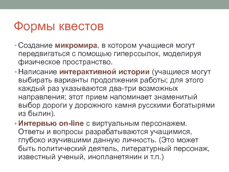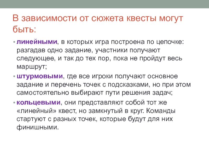 Слайд 5В зависимости от сюжета квесты могут быть: