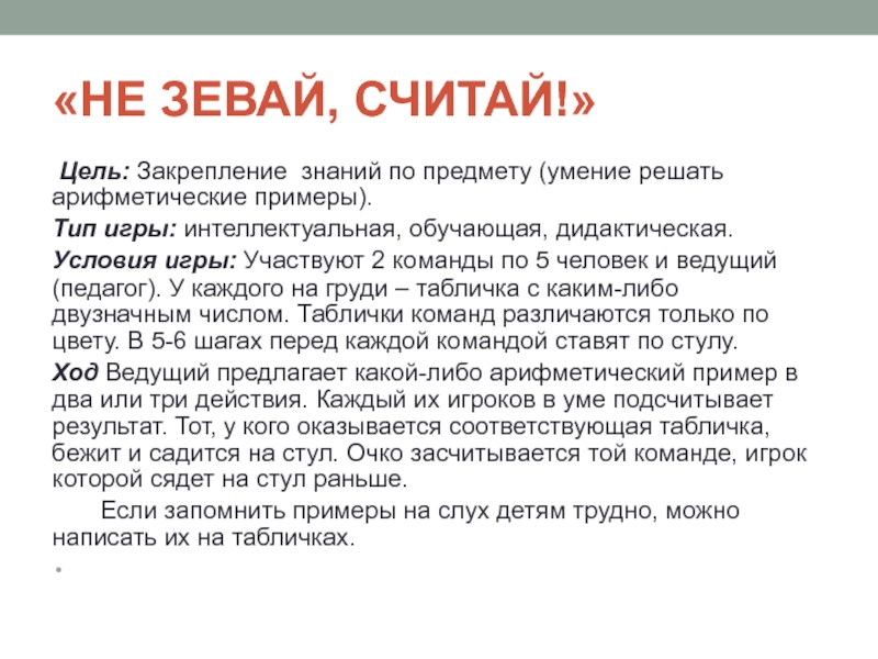 Слайд 29«НЕ ЗЕВАЙ, СЧИТАЙ!»