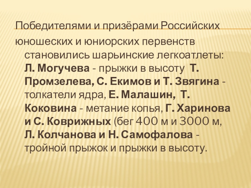 юношеских и юниорских первенств становились шарьинские легкоатлеты: Л.