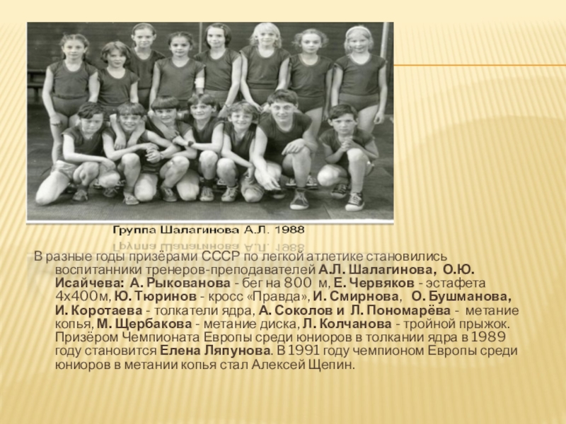Слайд 6В разные годы призёрами СССР по легкой атлетике становились воспитанники тренеров-преподавателей