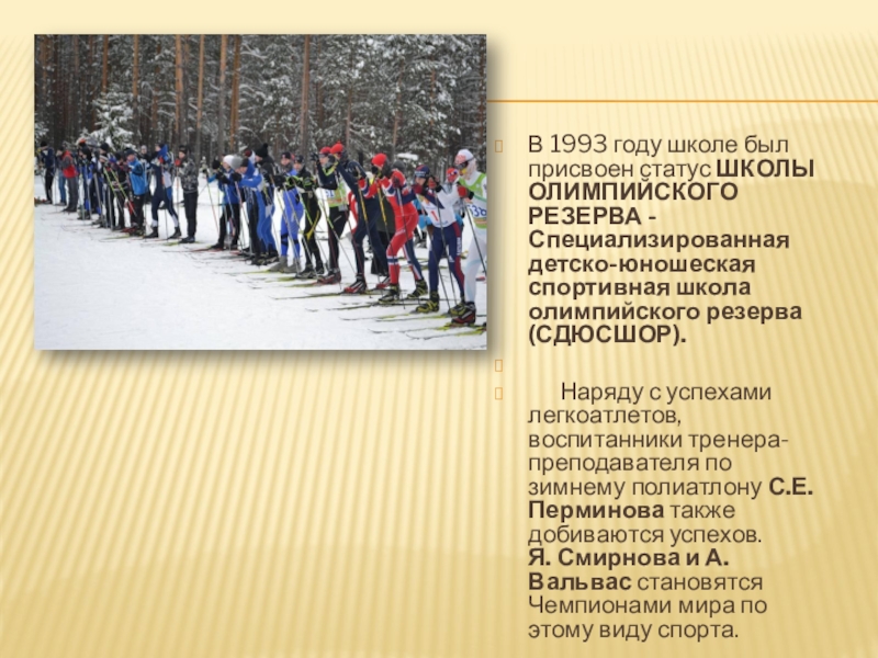 Слайд 8В 1993 году школе был присвоен статус ШКОЛЫ ОЛИМПИЙСКОГО РЕЗЕРВА -