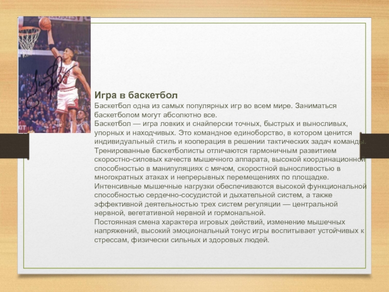 Игра, в которую впервые стали играть 18 юношей из школы в Спринфилде, стала игрой, завоевавшей сердца более 300 миллионов людей по всему миру. С 1936 г. баскетбол стал олимпийским видом спорта. В международную федерацию баскетбола (ФИБА) в 2002 году входили 173 страны.