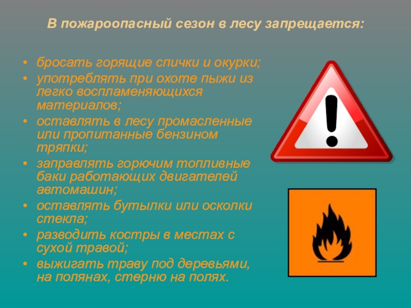 Слайд 13В пожароопасный сезон в лесу запрещается: