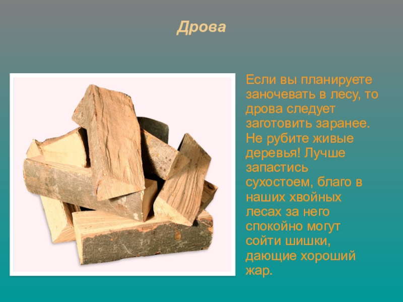 Если вы планируете заночевать в лесу, то дрова следует заготовить заранее.