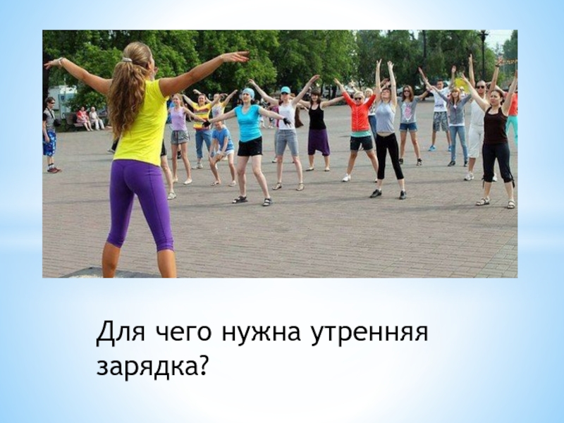 Слайд 5Утренняя зарядка: Потягушки Цветочек Самолетик Прятки Оглянись Прыжки Воздушный шар