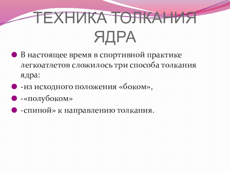 способа толкания ядра: