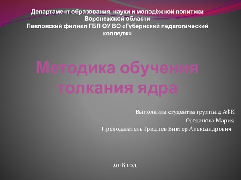 Методика обучения толкания ядра