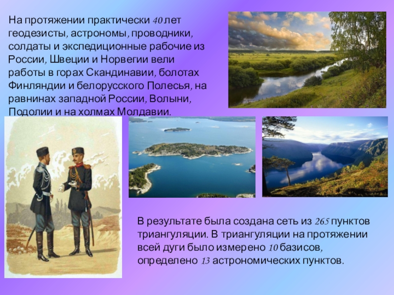 Слайд 10На протяжении практически 40 лет геодезисты, астрономы, проводники, солдаты и экспедиционные