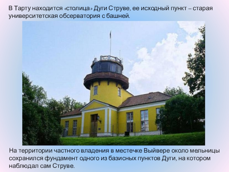 Слайд 18В Тарту находится «столица» Дуги Струве, ее исходный пункт – старая