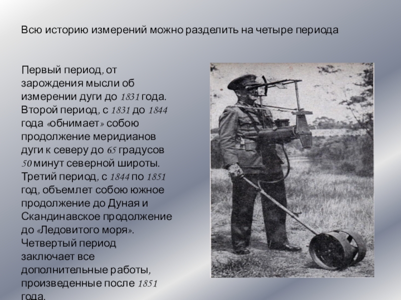 Слайд 9Измерение первой в России дуги меридиана началось в 1816 г., когда