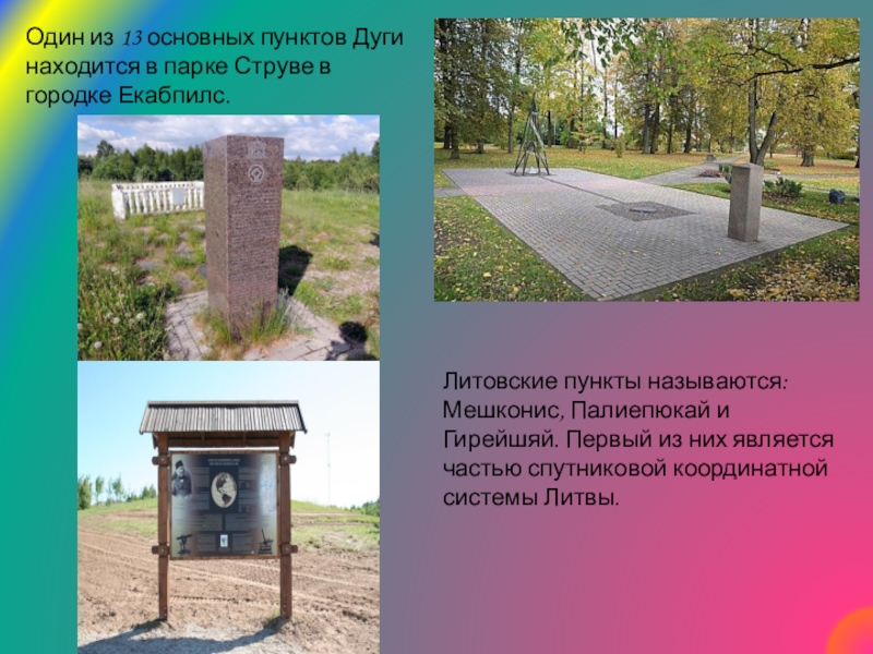 Слайд 19Один из 13 основных пунктов Дуги находится в парке Струве в