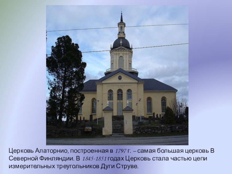 Северной Финляндии. В 1845-1851 годах Церковь стала частью цепи измерительных треугольников Дуги Струве.