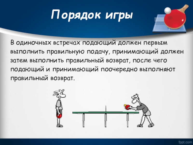 должен затем выполнить правильный возврат, после чего подающий и принимающий поочередно выполняют правильный возврат.
