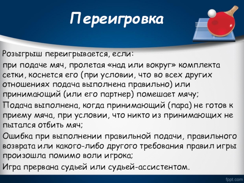 Ошибка при выполнении правильной подачи, правильного возврата или какого-либо другого требования правил игры произошла помимо воли игрока;