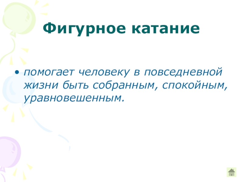 Фигурное катаниепомогает человеку в повседневной жизни быть собранным, спокойным, уравновешенным.