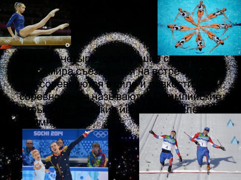 Слайд 3Каждые четыре года лучшие спортсмены всего мира съезжаются на встречу, где