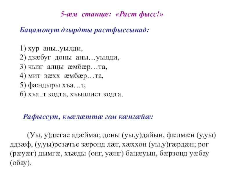 2. Сусæг зарæг … нæ фæкæнынц (хъæрæй).