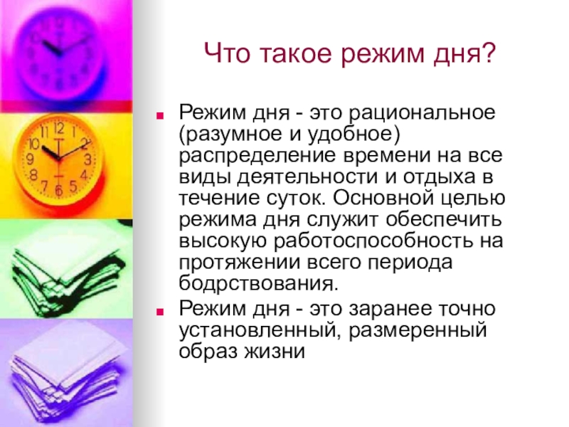 Режим дня - это заранее точно установленный, размеренный образ жизни