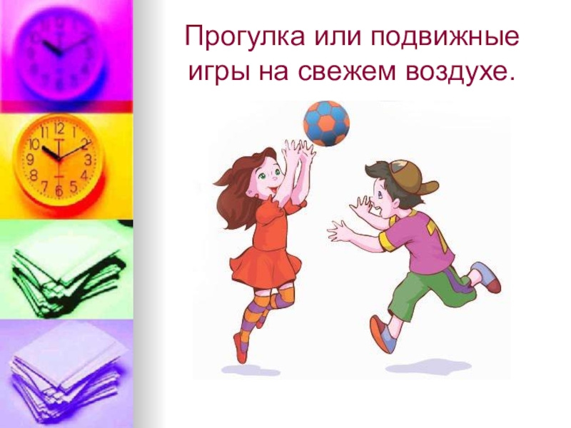 Слайд 12Прогулка или подвижные игры на свежем воздухе.
