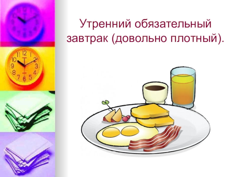 Слайд 8Утренний обязательный завтрак (довольно плотный).