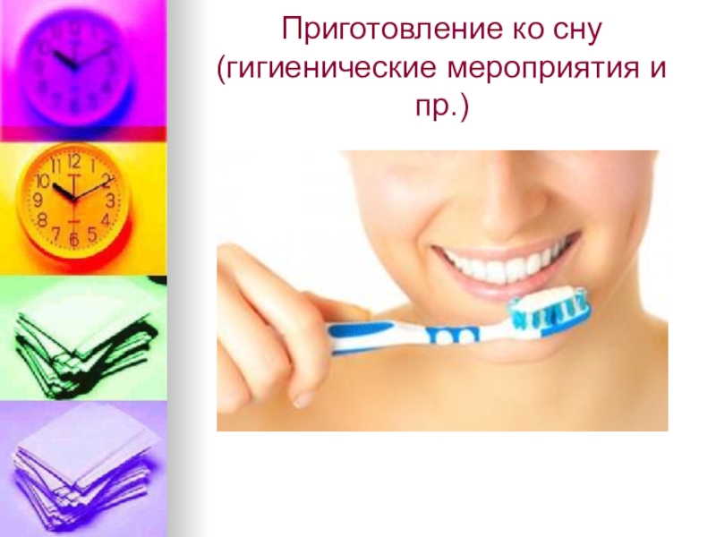 Слайд 16Приготовление ко сну (гигиенические мероприятия и пр.)