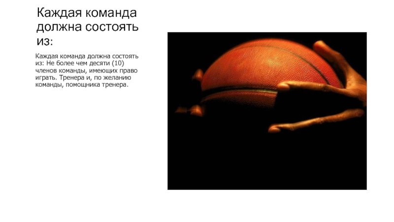 чем десяти (10) членов команды, имеющих право играть. Тренера и, по желанию команды, помощника тренера.