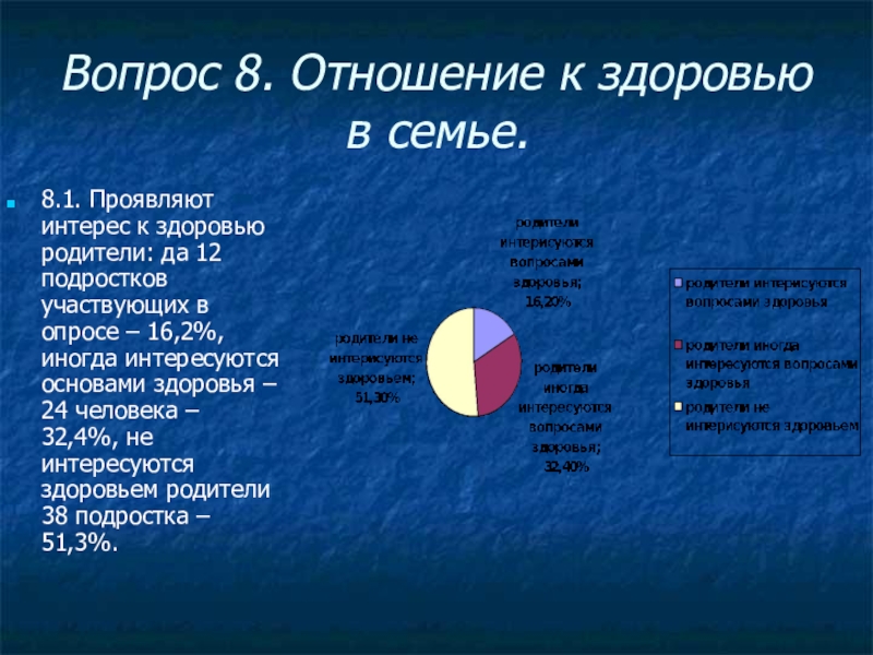 Слайд 31Вопрос 8. Отношение к здоровью в семье.