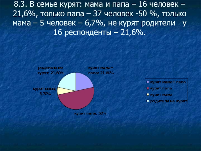 Слайд 338.3. В семье курят: мама и папа – 16 человек –
